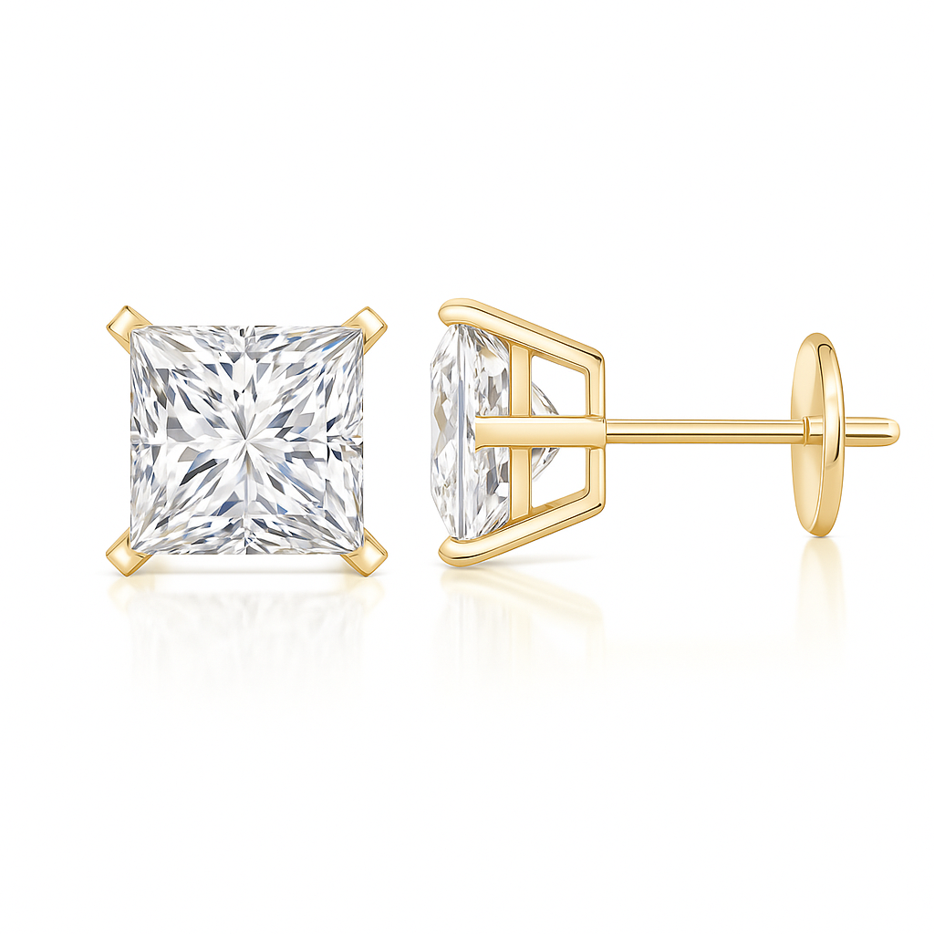 Princess-cut diamonds symbolize strength, individuality, and modern love. Lab-grown stones add a layer of sustainability, making these studs not only a statement of luxury but also of conscious living. Perfect as a gift of achievement, celebration, or eternal love, they carry a brilliance that resonates with purpose.