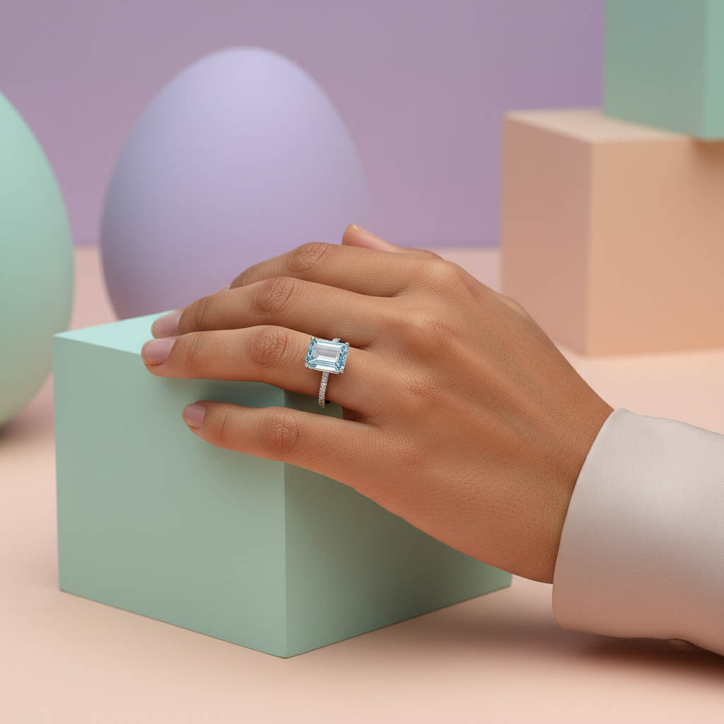Aquamarine, derived from the Latin for "sea water," embodies tranquility, clarity, and eternal love. This gem is treasured for its association with calm communication, serenity, and emotional transparency—qualities that strengthen the foundation of lasting relationships. Historically, sailors carried aquamarine as a talisman for protection and safe passage, making it a symbol of security and enduring devotion. An aquamarine engagement or statement ring signifies trust, fidelity, harmony, and the promise of navigating life's journey together with grace and honesty.